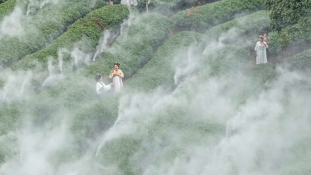 Parque temático de chá atrai turistas em Zhaoping