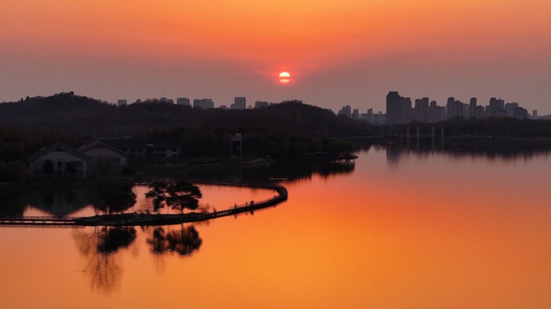 Lago Pingtian reflete imponência do céu ao anoitecer
