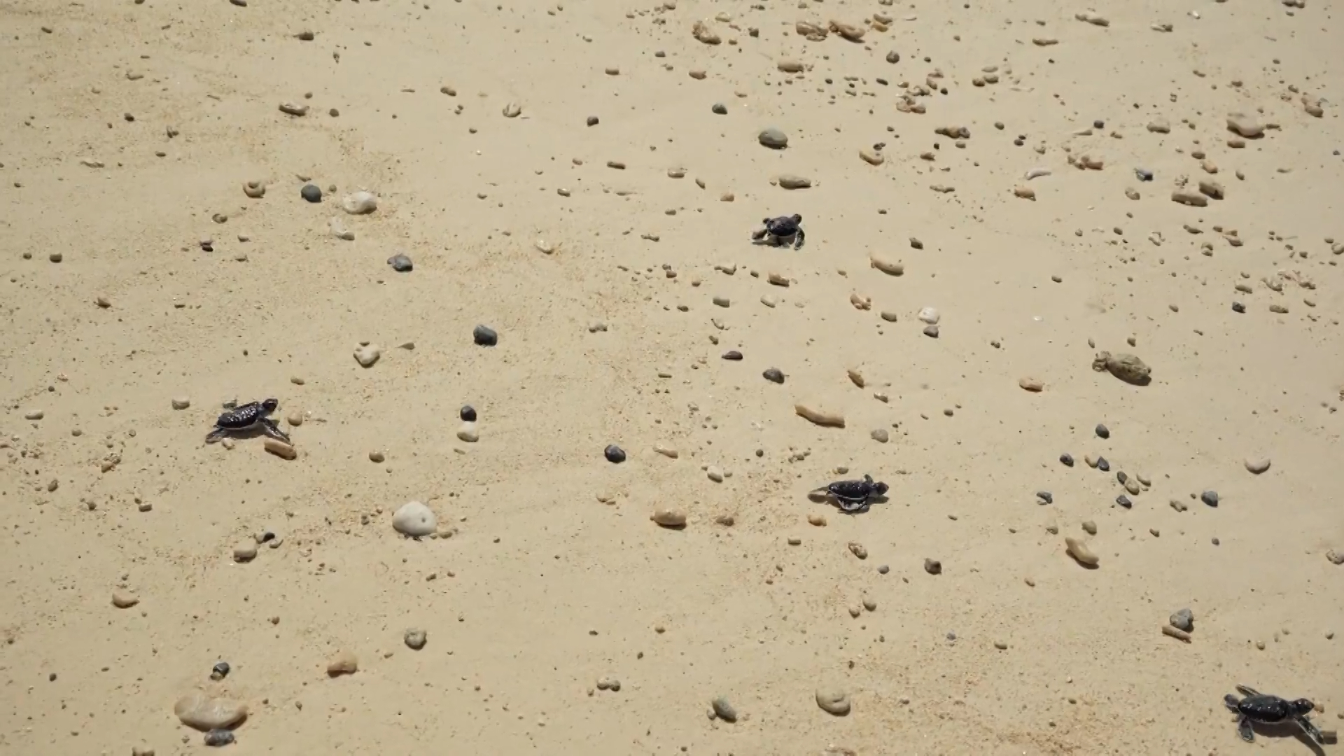 Filhotes de tartaruga-verde nascem nas Ilhas Nansha