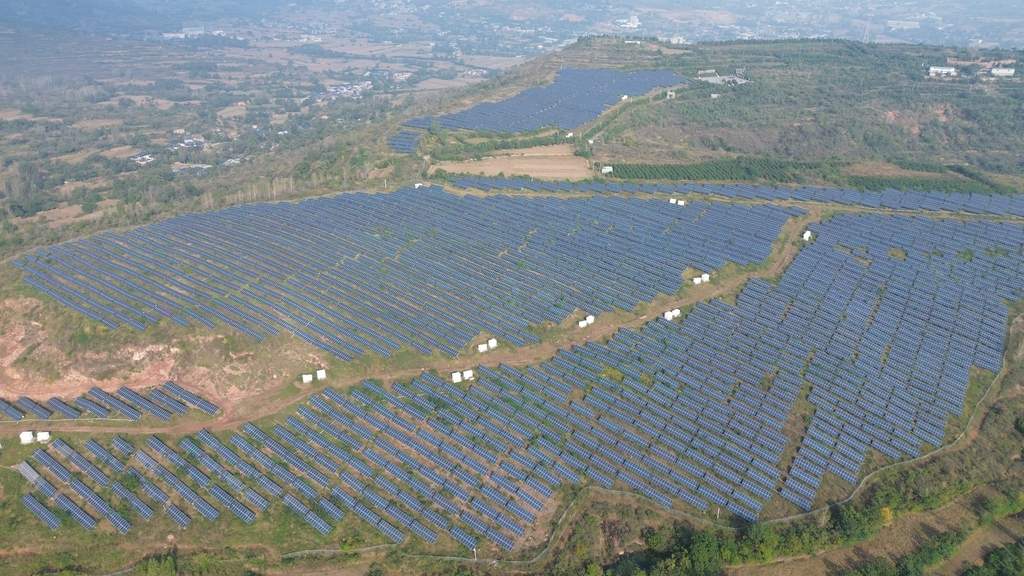 Placas fotovoltaicas nas montanhas áridas de Yuzhou