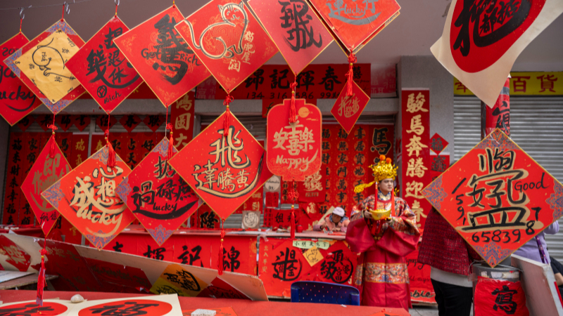 Moradores de Foshan compram caligrafias de Ano Novo