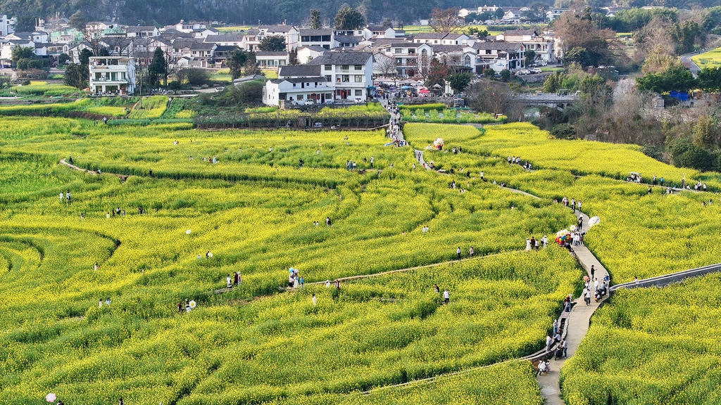 Desabrochar das flores de colza anuncia a chegada da primavera em Xingyi