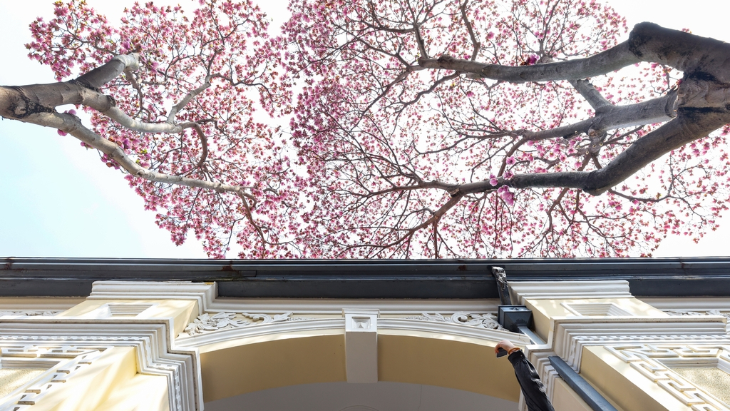 Paisagem primaveril de magnólias em Nanjing