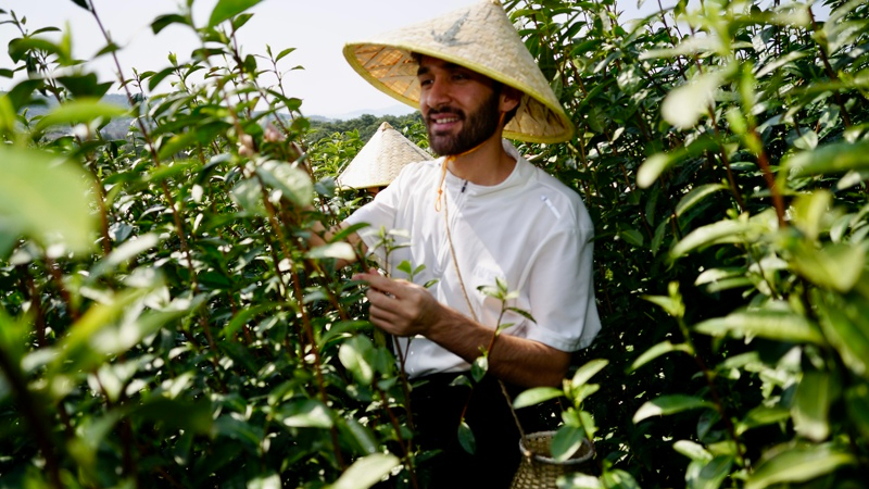 Estudantes estrangeiros experimentam a colheita do chá em Suzhou