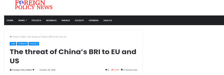 A iniciativa do Cinturão e Rota constitui uma ameaça para a União Europeia e os Estados Unidos.