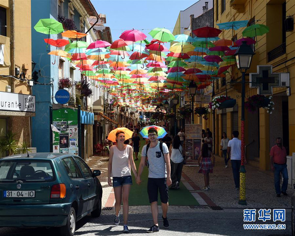 Em Águeda, Portugal, a prefeitura cobriu algumas ruas com guarda-chuvas coloridos como parte do festival de arte que acontece por lá todos os anos, em julho. Uma ideia simples e barata de enorme efeito, que sombreou as ruas áridas e deu a elas um ar de festa e alegria, além de um visual incrível.