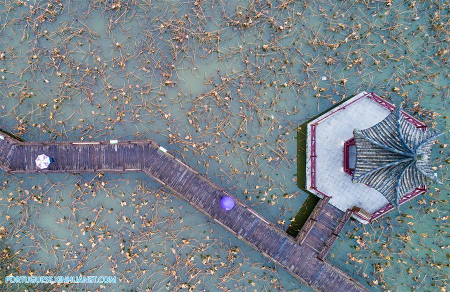 Foto aérea de 30 de novembro de 2017 mostra a paisagem do parque Tangxihe no distrito de Baohe em Hefei, capital da provínvia de Anhui, no leste da China.