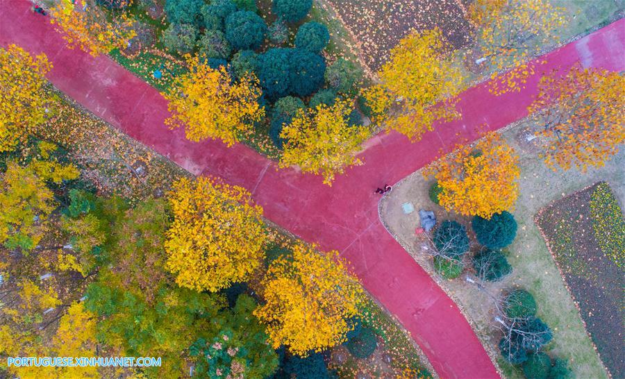 Foto aérea de 30 de novembro de 2017 mostra a paisagem do parque Tangxihe no distrito de Baohe em Hefei, capital da provínvia de Anhui, no leste da China.