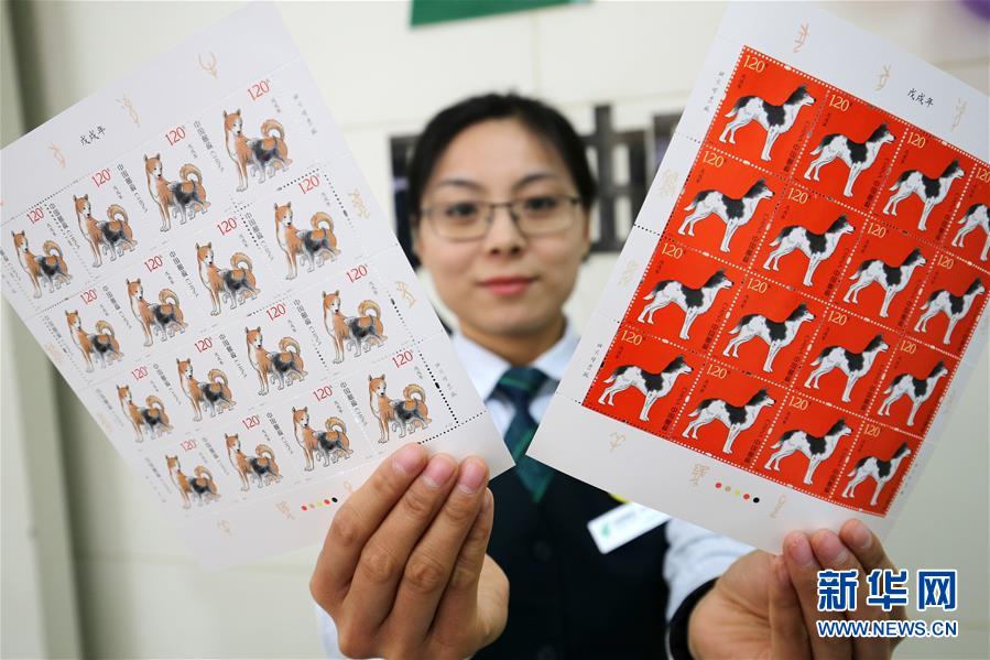 Fotos de 3 de janeiro de 2018 mostram um conjunto de selos do zodíaco prontos para serem emitidos para o próximo Ano do Cão em Weifang, província de Shandong, no leste da China. O China Post emitirá nesta sexta-feira um conjunto de selos especiais do zodíaco para o Ano do Cão com dois diferentes designs. (Xinhua/Zhang Chi)