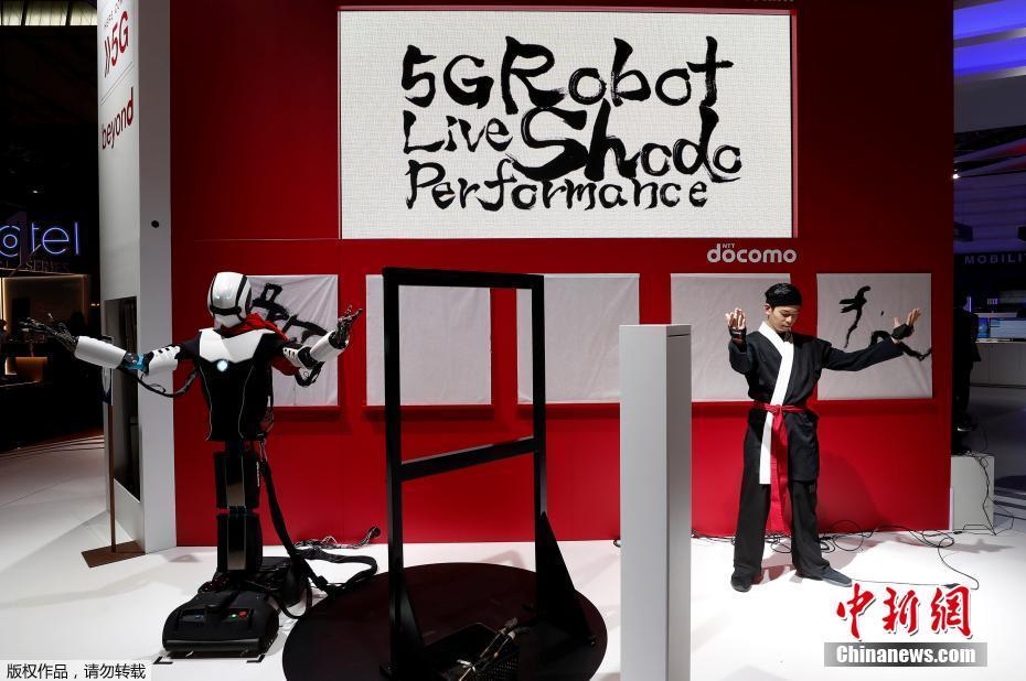 O 5G e a inteligência artificial são os destaques da indústria de telefonia móvel reunida no Mobile World Congress (MWC) de Barcelona. Nas fotos, os robôs conectados por redes 5G são capazes de efetuarmovimentos simultâneos com os manipuladores. Eles podem até praticar caligrafias chinesas.