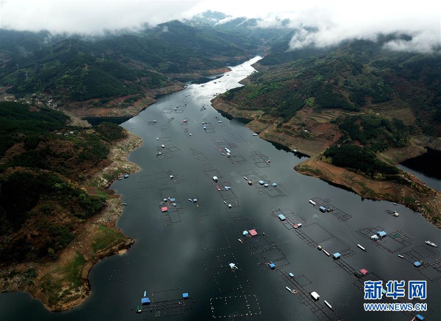 Piscinas de peixes criam diferentes formas no Rio Hongshui