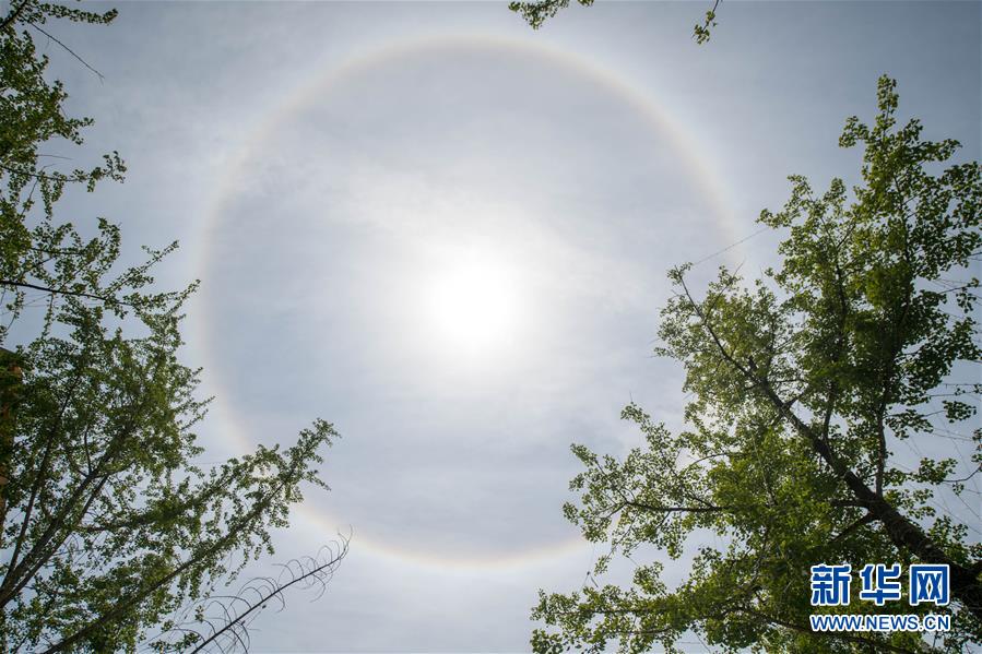 Foto de 9 de abril de 2018 mostra um halo solar sobre Kunming, capital da província de Yunnan, no sudoeste da China. (Xinhua/Hu Chao)