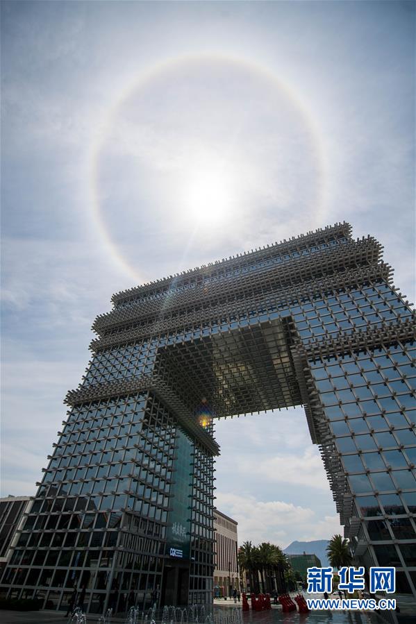 Foto de 9 de abril de 2018 mostra um halo solar sobre Kunming, capital da província de Yunnan, no sudoeste da China. (Xinhua/Hu Chao)
