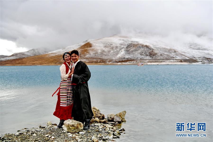 Bela paisagem do lago Yamzbog Yumco
