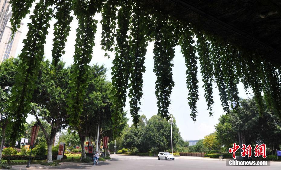 Um viaduto na cidade chinesa de Fuzhou está coberto de vegetação, o que ajuda a manter a limpeza e o frescor na zona.
