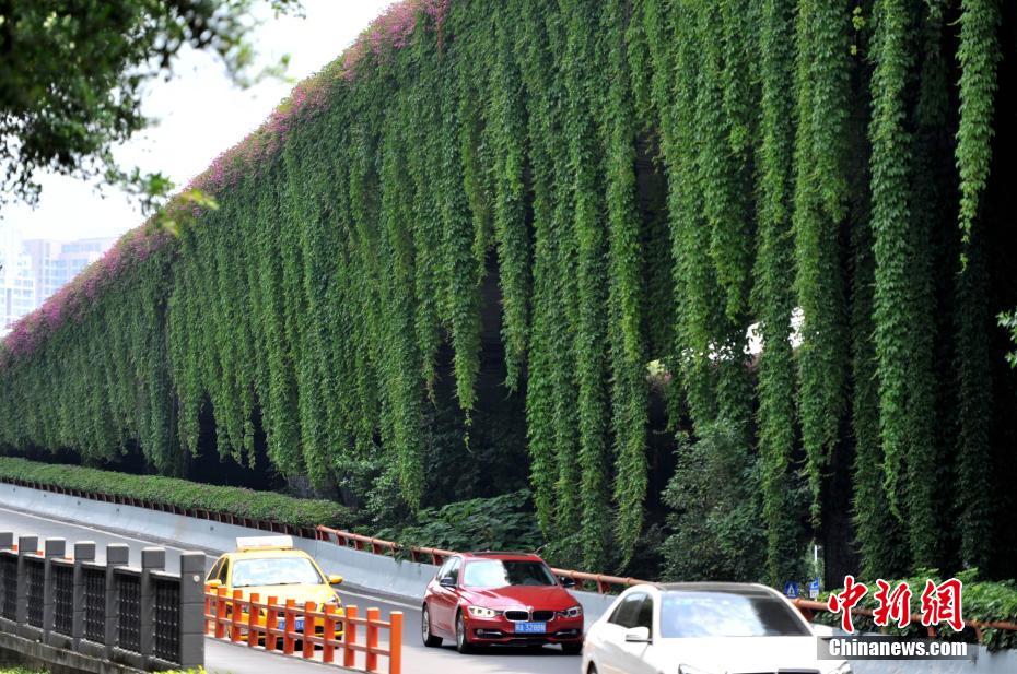 Um viaduto na cidade chinesa de Fuzhou está coberto de vegetação, o que ajuda a manter a limpeza e o frescor na zona.