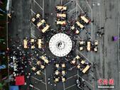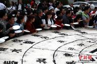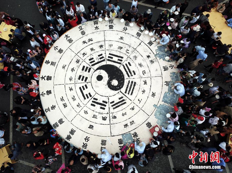 Um total de 1550 quilogramas de soja foram usados para fazer um tofu de 3500 quilos, decorado com caracteres chineses, símbolos dos 24 termos solares, e com o símbolo “yin e yang”. A 19 de maio de 2018, cerca de 10 mil visitantes compartilharam o alimento na montanha Laojun, na cidade de Luoyang, província de Henan, conhecida pela sua herança cultural relacionada com o taoísmo. (Foto: China News Service/Wang Zhongju)