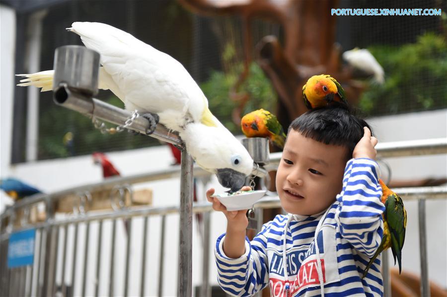 O aviário com mais de 600 araras e papagaios de mais de 30 espécies foi aberto ao público no domingo em Chongqing, fornecendo experiência interativa aos visitantes.