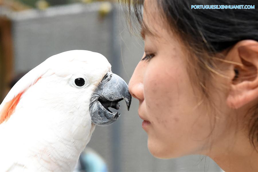 O aviário com mais de 600 araras e papagaios de mais de 30 espécies foi aberto ao público no domingo em Chongqing, fornecendo experiência interativa aos visitantes.