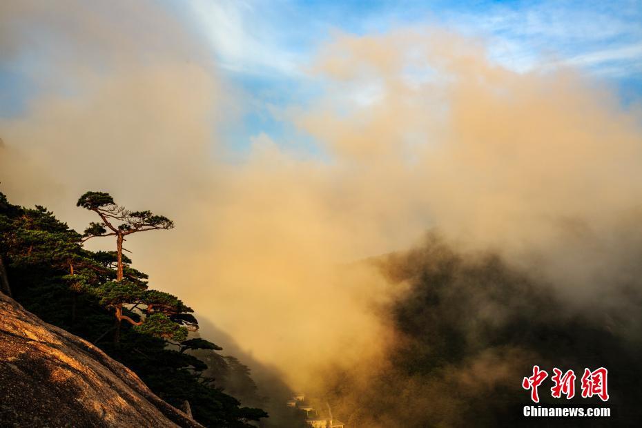 Mar de nuvens na montanha Huangshan na província de Anhui