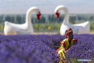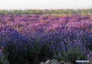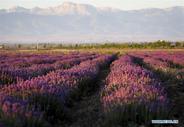 Lavandas florescem no vale do rio Ili no Distrito Autônomo da Etnia Xibe de Qapqal, Sub-região Autônoma da Etnia Cazaque de Ili, Região Autônoma Uigur de Xinjiang, no noroeste da China, em 27 de junho de 2018. (Xinhua/Zhao Ge)