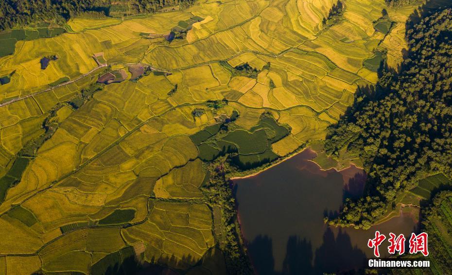 Fotos de vista aérea do campo de arroz em Xinyu, da província de Jiangxi
