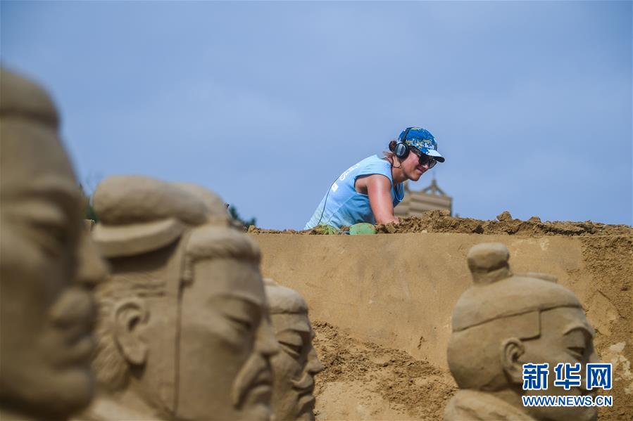 As esculturas de mais de 30 escultores de areia em todo o mundo serão exibidas aos visitantes no dia 21 de julho. (Xinhua/Xu Yu)