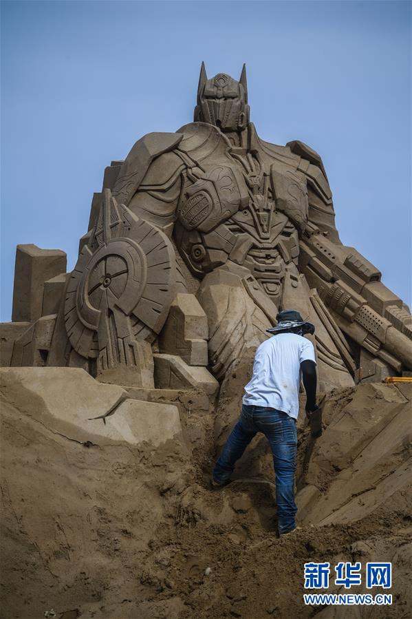 As esculturas de mais de 30 escultores de areia em todo o mundo serão exibidas aos visitantes no dia 21 de julho. (Xinhua/Xu Yu)