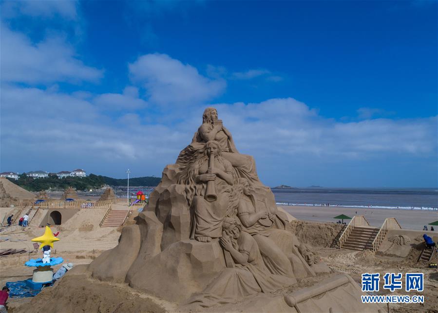 As esculturas de mais de 30 escultores de areia em todo o mundo serão exibidas aos visitantes no dia 21 de julho. (Xinhua/Xu Yu)