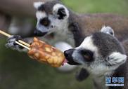 Animais do Zoo ganham alimentos congelados para aliviar calor do verão