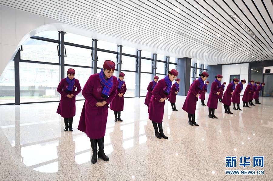 As tripulantes de trem-bala da China Railway Chengdu Group participam de um curso de formação, a fim de oferecer melhores serviços aos passageiros durante o período atarefado do Festival da Primavera de 2019.