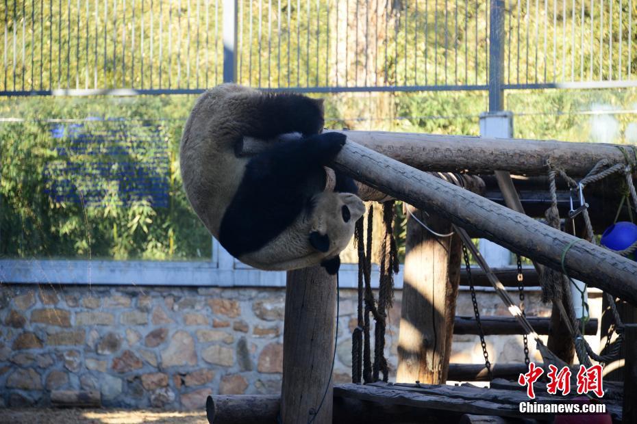 Pandas-gigantes aproveitam o sol de primavera em Beijing