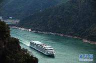 Navios navegam na Garganta Wuxia, uma das três gargantas do rio Yangtzé, no distrito de Wushan, municipalidade de Chongqing, sudoeste da China, em 26 de março de 2019. (Xinhua/Wang Quanchao)