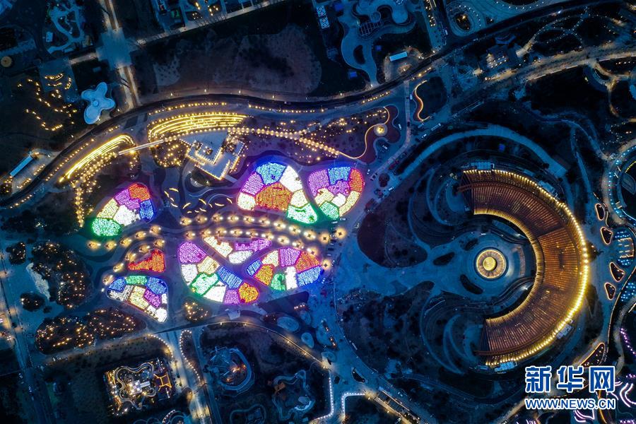 Vista noturna do sítio de Exposição Internacional de Horticultura de Beijing