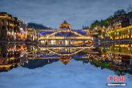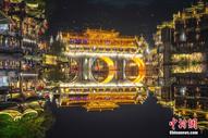 A 11 de abril, a visão noturna da Cidade Antiga de Fenghuang, na província de Hunan, atraiu a visita de muitos turistas. As pontes de madeira, edifícios de palafitas e torres de estilo antigo são refletidas no rio Tuojiang, fazendo com que viajantes se sintam em um sonho enquanto passeiam pela cidade antiga.