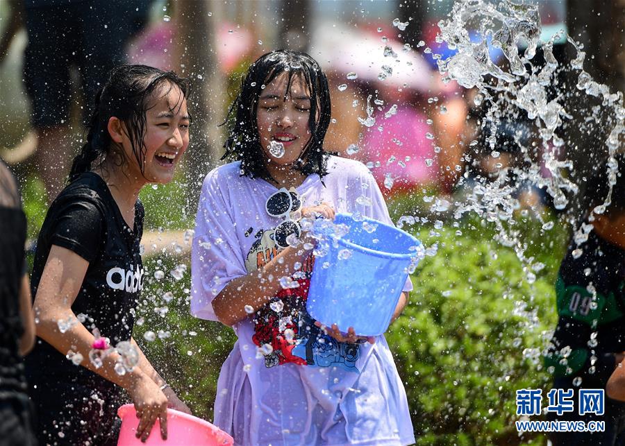 As pessoas borrifam água para celebrar o festival de aspersão de água numa praça na cidade de Puer, na província de Yunnan. O festival é o Ano Novo no Calendário Daí. Durante o festival, são realizadas outras atividades como competição de barcos de dragão, soltar lanternas de Kongming e diversos espectáculos artísticos.
