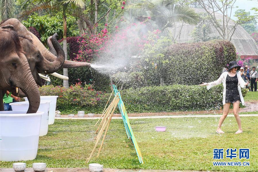 As pessoas borrifam água para celebrar o festival de aspersão de água numa praça na cidade de Puer, na província de Yunnan. O festival é o Ano Novo no Calendário Daí. Durante o festival, são realizadas outras atividades como competição de barcos de dragão, soltar lanternas de Kongming e diversos espectáculos artísticos.