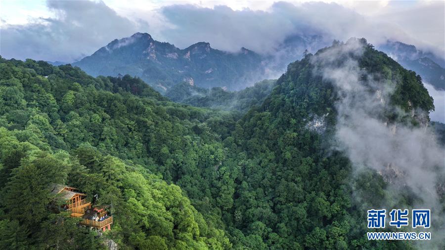 Foto mostra o cenário do Parque Nacional Florestal Wulongdong no distrito de Lueyang, província de Shaanxi, no noroeste da China. (Xinhua/Tao Ming)