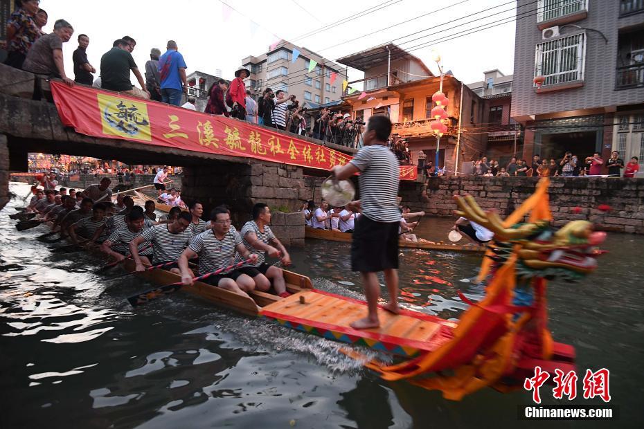 Corrida de barcos-dragão é realizada em Fujian