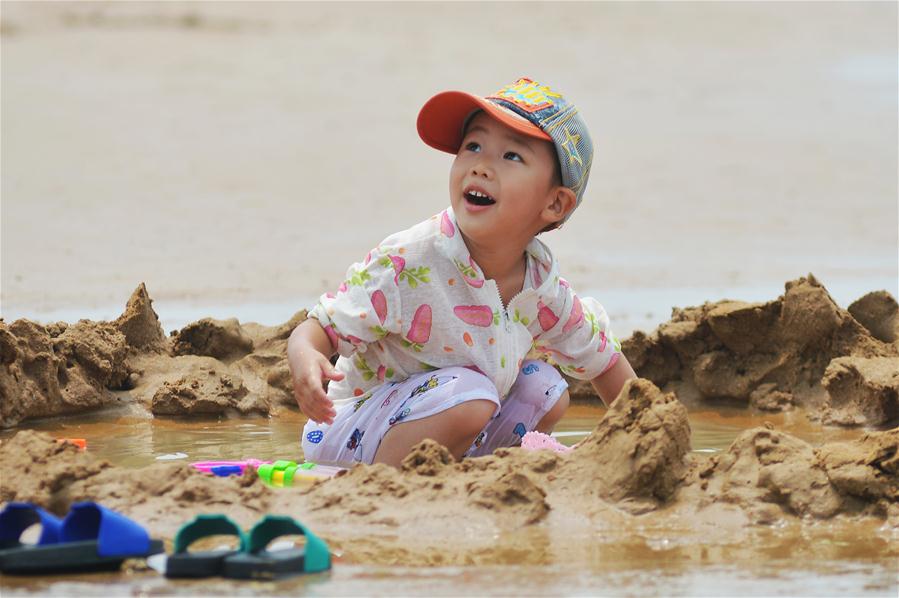 Turistas se divertem na praia Shilaoren em Qingdao