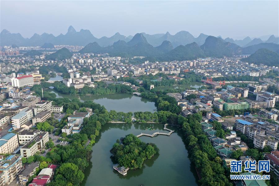 Cenário do Lago Ronghu em Guilin, Região Autônoma Zhuang de Guangxi