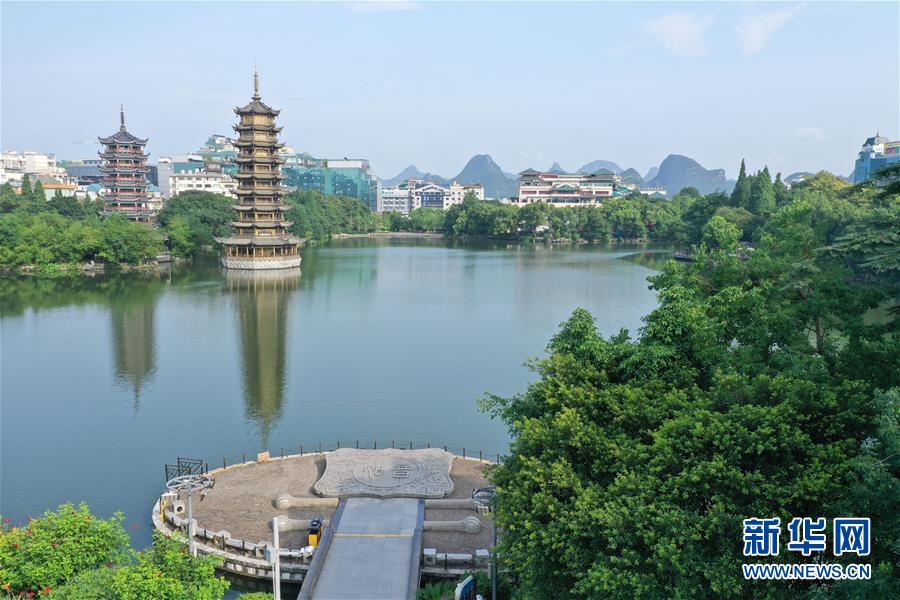 Cenário do Lago Ronghu em Guilin, Região Autônoma Zhuang de Guangxi
