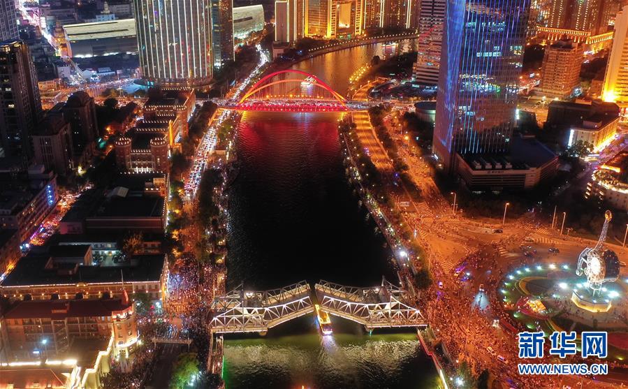 A Ponte da Liberdade, um dos símbolos da cidade de Tianjin, foi fundada em 1902 e reconstruída em 1923. No primeiro dia de julho, data de aniversário do Partido Comunista da China, mais de 10 mil visitantes chegaram ao local para apreciar a paisagem noturna sobre a ponte e toda a cidade.