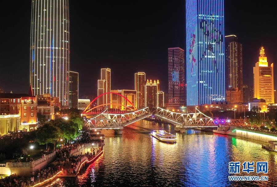 A Ponte da Liberdade, um dos símbolos da cidade de Tianjin, foi fundada em 1902 e reconstruída em 1923. No primeiro dia de julho, data de aniversário do Partido Comunista da China, mais de 10 mil visitantes chegaram ao local para apreciar a paisagem noturna sobre a ponte e toda a cidade.