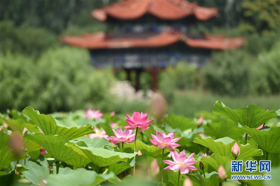 As flores de lótus estão desabrochando no Parque Qingcheng, Hohhot