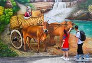 Pinturas trimensionais em muros fazem da aldeia de Le'an um lugar de atração turística na província de Jiangxi, centro da China.