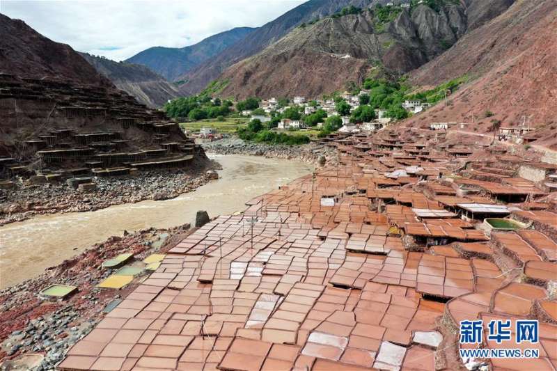 A foto mostra um morador trabalhando no campo de sal no município de Naxi, região autônoma do Tibete. Esta forma de extrair sal evaporando salmoura ao sol vem desde a Dinastia Tang (618-907 DC). As técnicas tradicionais de arejar o sal foram passadas e preservadas nas salinas do município.