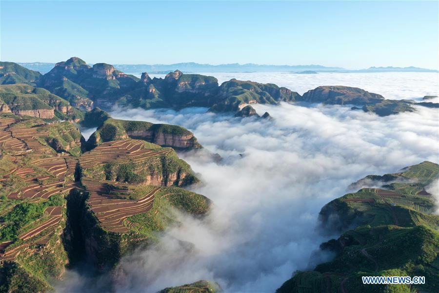 Mar de nuvens na vila de Liushigang em Hebei
