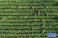 Um agricultor colhe folhas de chá, na vila Baisha Li, província de Hainan, sul da China. A plantação faz parte do projeto do governo para promover a eliminação da pobreza. Até ao momento, o projeto que conta com 400 mu (cerca de 26,6 hectares) de horta, ajudou 362 famílias pobres.