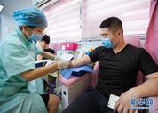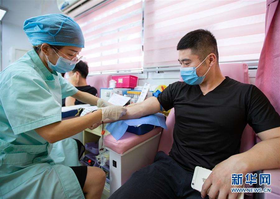 Um morador doa sangue voluntariamente em um ponto de doação em Nanjing, província de Jiangsu, leste da China. No domingo foi celebrado o dia mundial de doação de sangue.